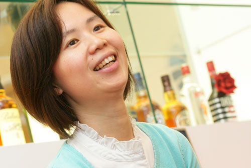 百齡罈是全球前三大排行威士忌品牌之一,其特徵有甜味、水果味、圓潤和溫和的口感,張崇貞經理表示,已共使用了50多種麥芽威士忌和四種穀物威士忌調和而成,如何取的期中的平衡全靠調酒師的功力。她還建議如果是剛入門的消費者,應該從低年份的酒來喝,循序漸進才能真正了解威士忌的多種風貌,在選擇出最適合自己的口味。(下圖:張崇貞經理)