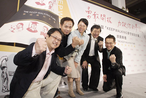 西門町夢想之家青年中心負責人~廖文華(31歲,台北)- 獲「圓夢起步金」110萬元,及「圓夢學堂」獎項~我深信,唯有改變青年,才能改變未來! 設立青年中心:用愛心、關心緊緊拉著青少年的手,脫離街頭、迎向希望。 夢想源起:擁有法學碩士學位的廖文華,求學時便開始擔任訴訟法務助理,親眼目睹許多青少年誤入歧途的真實案例,他深刻體認到「法律只是後面的階段,無法從源頭解決問題」,於是開始思索「教育」與「品格」的影響力,他相信青少年如果有正確的態度、品格,就能夠在家庭、在學校、在未來活出卓越成功的生命。2006年廖文華號召了一群志同道合的朋友及大學生,成立「夢想之家青年中心」,將中心設立在台北市青少年最喜愛的聚會場地-西門町。廖文華以一間20坪不到、善心人士免費提供的老舊公寓做為教室,憑著多年與青少年相處的經驗,他深知單純的課業輔導是無法吸引青少年上門的,因此除了課輔班,他還開設街舞班,每週末除了安排台大學生前來協助輔導青少年的課業外,也有舞蹈老師義務教導他們最愛的街舞,宣洩他們無窮盡的青春活力。所有的班級都只收取極低廉的場地費,並給予清寒與弱勢家庭完全免費的補助,廖文華與孩子們的唯一的條件是,所有的學生都要留下來參加一個小時的品格教育課程,廖文華與「夢想之家青年中心」義工們希望藉由品格教育拉回社會邊緣的孩子。他強調「透過給予,才能真正地了解自己並不缺乏」也希望藉由這樣的回饋,讓青年中心的孩子們能透過分享,成為一個真正富有且快樂的人! 夢想計畫:屆滿兩歲的「夢想之家青年中心」有了初步的成果,在接觸的中輟生、幫派少年等都踏回正途後,廖文華帶領一路並肩作戰的團隊成員們於2008年5月創辦了「中華民國夢想之家青年發展協會」,希望能為更多的青少年打造一個全人發展且空間充裕的生活中心。 得獎後未來一年如何實踐:獲得「KEEP WALKING 夢想資助計畫」的110萬圓夢起步金後,廖文華除了計畫在大台北地區為青少年打造一個全人發展且空間充裕的生活中心之外,更將融合圓夢學堂創新管理課程的精華,複製「中華民國夢想之家青年發展協會」的西門町經驗協助其他縣市、地區也成立相同功能的青年中心。廖文華說:「我相信所有團隊都走在正確的道路上,用真心引領更多年輕人改變青少年。」 「如果兒童劇團」團長~趙自強(43歲,台北) - 獲「圓夢起步金」112萬元~我從來沒有想到,扮演一個小丑,會是這麼奇妙的事情!上山下海說故事──把故事快樂的種子送到孩子心中:走遍台灣兒童病房為小朋友說故事,為這一代的孩子留住這一代的故事。 夢想源起: 20多年前,趙自強開始躲在濃濃小丑裝的背後,使出渾身解術博得小朋友們的笑容,要把快樂、愛與希望帶給病床上的小朋友們。「為孩子們說故事,把快樂帶到病床邊」的心願就像顆種子,早已深埋在他心中,發芽、茁壯。看著蒼白而且虛弱的小小臉龐帶著渴望的眼神,趙自強發現病童們需要的不只是醫療和藥品,他們需要快樂、笑容更需要希望與勇氣,而好的故事與表演,幫助了孩子們在所有連大人都害怕的醫療過程當中,看到生命一線希望。2000年,趙自強集結台灣優秀的製作與創作人才創立「如果兒童劇團」。近三年內,他開始積極訓練劇團中的說故事達人,「這是一個龐大的夢工廠,不只我一個人作夢,還有許多人跟我一同作夢,要為小朋友製造更多的夢!」希望有天能將好故事送到需要激勵的地方。 夢想計畫:2006年,趙自強首度報名「KEEP WALKING 夢想資助計畫」,希望藉由獎金的資助,讓這群故事達人們能為更多「病床邊」的小朋友說故事但礙於競爭激烈而失之交臂。2007年他再年再度報名,卻仍再與資助獎金擦身而過,今年他仍繼續堅持,終於獲得第五屆「KEEP WALKING 夢想資助計畫」中「圓夢起步金」的資助。 得獎後未來一年如何實踐:獲得「KEEP WALKING 夢想資助計畫」的112萬圓夢起步金後,趙自強計畫用一年的時間,透過這群訓練有素的故事達人,到全台有兒童病房的醫院、偏遠鄉鎮甚至是災區進行巡迴義演,並進行影音記錄,未來希望透過網路或尋求與電信業者合作,發行光碟,為這一代孩子留下屬於他們的故事,並散播這些故事到更多需要的角落;同時趙自強也計畫教長期住院的小朋友說故事,也讓他們說故事給其他病童聽,讓他們在枯燥無聊的住院生活中找到樂趣,忘卻孤單與恐懼。 台北市市民管樂團團長~蘇世文(60歲,台北) - 獲「圓夢起步金」112萬元~收容人每一次欲罷不能、渴望音樂的眼神,就是鼓勵我繼續往前的動力!北所音樂班-更生希望工程:帶領台北市市民管樂團深入台北看守所,透過音樂穩定收容人的情緒、重建自信,並激勵收容人正向奮發之心,淨化社會暴戾之氣。 夢想源起:年近耳順的蘇世文自求學時接觸到銅管樂器「小號」後,便對音樂產生莫大的興趣,並投身學校樂隊一直到大學畢業,之後因為家庭及事業,他暫時放下對音樂的熱愛,但卻無法抑止深埋在心中的音樂種子茁壯。2000年,蘇世文重拾樂器並活躍於各大樂團,同年也與台北市的愛樂同好自發性立成立「台北市市民管樂團」,為國內少見全憑團員熱誠投入及票房維持,且具有制度及規模的大型管樂團。樂團成立至今投入多項公益活動,並成功輔導天母聖道兒童之家半數以上的院童學習樂器。2006年,他更與法務部及台灣更生保護協會合作,