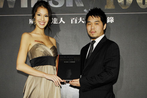 發表會現場酒訊總監吳彥均先生(右圖) 贈與Whisky 100書刊給予Akemi香月明美