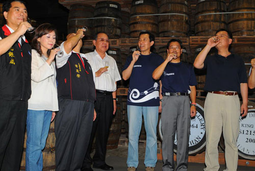 馬總統日前至金車宜蘭酒廠造訪,金車特地開桶讓總統品飲台灣首座威士忌酒廠原酒桶,第一桶為波本原酒桶,酒精濃度約為58%,馬總統豪氣一飲而盡,金車董座立即再開出雪莉原酒桶,香醇圓潤口感讓總統大為讚嘆!同時,總統也肯定金車企業立足台灣放眼國際之決心,相當值得大家學習!